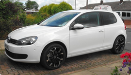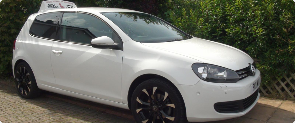 The car you will be learning to drive in is a white dual-controlled 2011 Volkswagen Golf 2.0 Match Bluemotion.